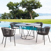 Gran oferta, juego de mesa y silla para exteriores a bajo precio, silla de cuerda trenzada de ratán PE para jardín, sillas de Metal y aluminio para comedor de restaurante