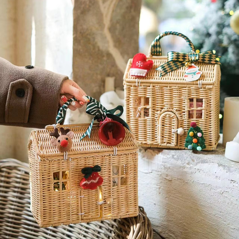 Cesta de regalo de Navidad de ratán con tapa de asa para acampar, cesta de dulces de playa, cestas de Festival de frutas de embalaje